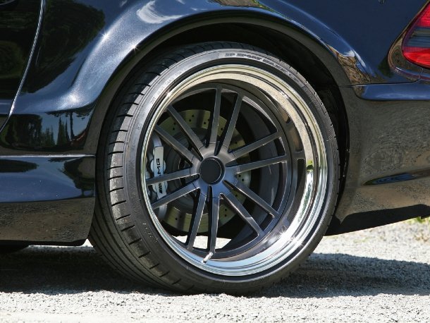 Um die breiten Radhäuser auszunutzen bietet Inden-Design den exklusiven Black Saphir-Leichtmetall-Radsatz in 20 Zoll an. Vorn rollen die Räder auf 275/30er, hinten auf 325/25er Pneus vom Typ Dunlop SP Sport Maxx GT. Das serienmäßige ABC-Fahrwerk des SL 63 AMG wird von Inden-Design mit einer speziellen Steuerung ausgestattet, die den Wagen ab 70 km/h um 20 Millimeter tieferlegt.