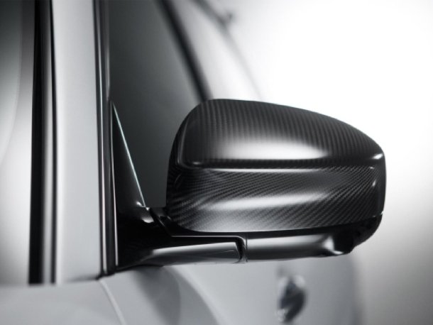 Auch die Außenspiegelgehäuse tragen den Hochleistungswerkstoff Carbon.