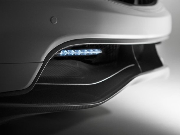 Die Frontschürze trägt nicht nur Carbon, sondern auch eine geschwungene Spoilerlippe und integrierte Tagfahr-LEDs.