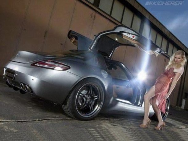Kicherer gehörte dabei bereits Mitte des Jahres zu den Ersten, die einen umgebauten SLS live zeigen konnten, während andere bis dahin lediglich mit Computerzeichnungen hantierten. Nun hat man dem Fahrzeug mittels gezielter Handgriffe noch mehr Feinschliff verliehen. Heraus kommt der Kicherer SLS 63 Supersport, der in den Pressebildern selbstbewusst von einer blonden jungen Dame in Szene gesetzt wird.
