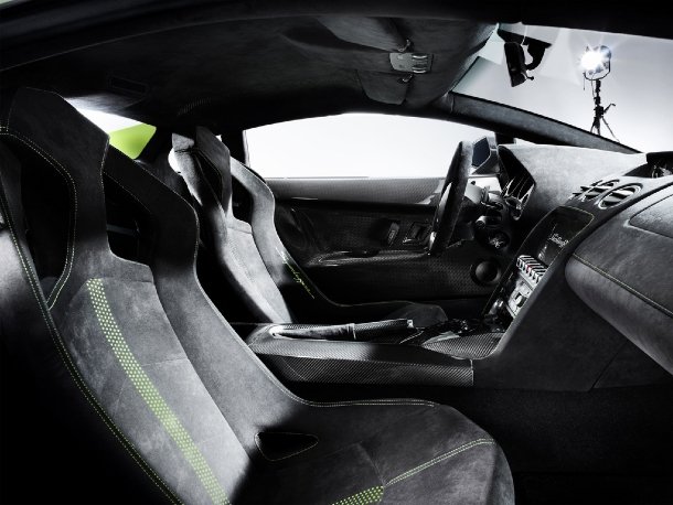 Im Innenraum werden Fahrer und Beifahrer von Alcantara-bezogenen Sportsitzen umschmeichelt, auf denen Dekornähte in Exterieurfarbe eingearbeitet sind. Mitteltunnel und Türverkleidungen sind aus Kohlefaser gearbeitet. Trotz der Ausrichtung des Fahrzeuges auf möglichst wenig Gewicht muss der Käufer jedoch nicht auf eine Klimaanlage oder elektrische Fensterheber verzichten.
