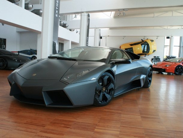 Im Obergeschoss angekommen, fanden sich zwei weitere Serienfahrzeuge: Ein Countach 25th Anniversary und das Pressefahrzeug des wohl wildesten Lamborghini der letzten Jahre, des Reventón. Letzterer wurde 2008 in einer limitierten Edition von nur 20 Stück weltweit verkauft und Ende 2009 mit einer offenen, auf 15 Exemplare limitierten Roadster-Variante ergänzt.