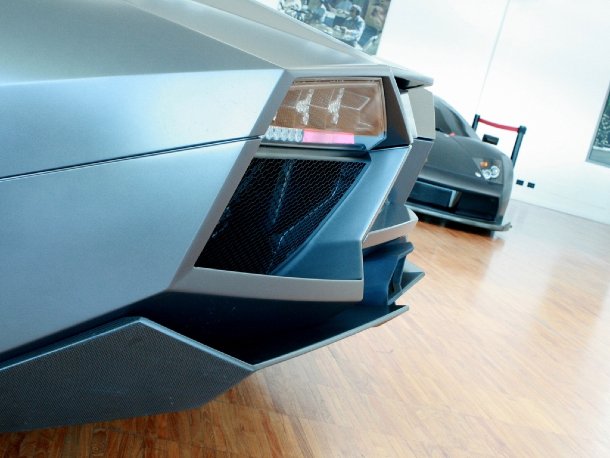 Im Obergeschoss angekommen, fanden sich zwei weitere Serienfahrzeuge: Ein Countach 25th Anniversary und das Pressefahrzeug des wohl wildesten Lamborghini der letzten Jahre, des Reventón. Letzterer wurde 2008 in einer limitierten Edition von nur 20 Stück weltweit verkauft und Ende 2009 mit einer offenen, auf 15 Exemplare limitierten Roadster-Variante ergänzt.