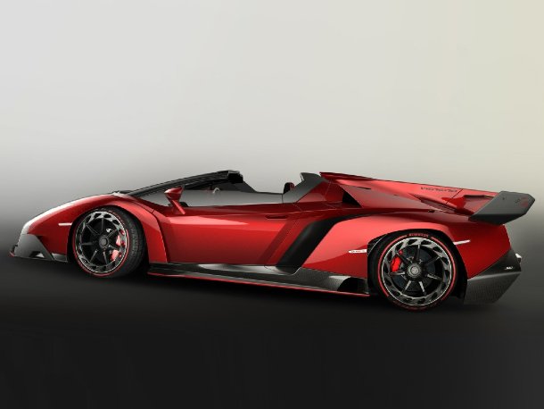 Der Veneno Roadster ist vor allem eines: Freizügig offen. Für Fahrer und Beifahrer ist keinerlei Verdeck vorgesehen. Fahrten im Regen sind also nicht zu empfehlen. Auf trockener Piste sorgt die ausgefeilte Aerodynamik, die den Wagen optisch stark an einen Le Mans Prototypen erinnern lässt, für hohe Fahrdynamik und viel Stabilität auch in schnell gefahrenen Kurven. Trotz der extremen Optik bleibt dabei die Straßenzulassung erhalten. Das Vorstellungsfahrzeug trägt den auffälligen Farbton Rosso Veneno, der jedoch keinesfalls Pflicht für die kommenden neun Veneno Roadster Besitzer ist. Jeder kann seinen Wagen in Wunschfarbe konfigurieren.