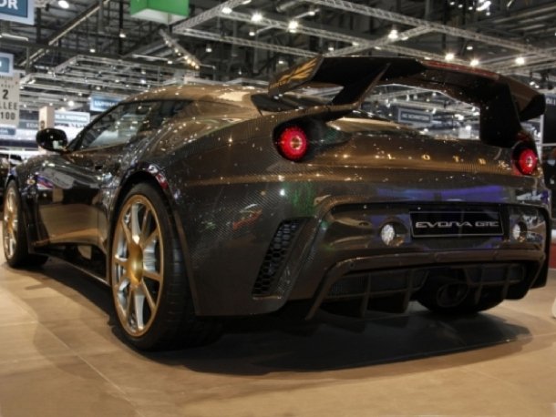 Auf Basis des beflügelten Evora GTE zeigt sich der F1 Limited Edition komplett in Sichtcarbon mit goldenen Akzenten.