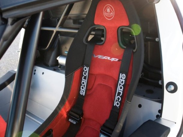 Im Interieur verbaut Lotus einen Sportschalensitz aus Carbon mit HANS-Tauglichkeit und passendem Sechspunktgurt. Ein FIA-geprüfter Überrollkäfig nebst ebenfalls durch die FIA überprüfter Feuerlöschanlage komplettieren die Sicherheitsausstattung. Um den Einstieg zu erleichtern, ist das Sportlenkrad abnehmbar.