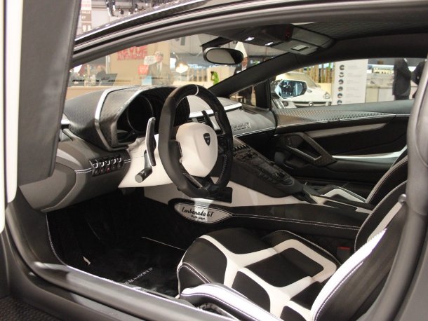 Das Interieur des Mansory Carbonado GT zeigt sich in schwarz und weiß. Wie üblich kommen nur edelste Materialien wie Leder und Carbon zum Einsatz.