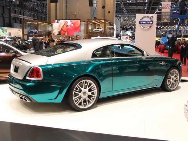 „R“ wie Rolls-Royce – aus diesem Hause stammt die finale Neuheit des Genfer Automobilsalons. Nachdem Mansory schon den Phantom, den Phantom Drop Head Coupé und den Ghost veredelt hat, war es grundsätzlich gesehen nur eine Frage der Zeit bis man den jünsten Sproß aus Goodwood unter seine Fittiche nimmt. Herausgekommen ist dabei erneut ein beeindruckendes Stück Technik, welches zunächst vor allem durch seine auffällige Zweifarbgestaltung den Betrachter fesselt. Natürlich wurde ein sportliches Bodykit verbaut, welches den Wagen gegenüber der Serie deutlich sportlicher und potenter wirken lässt. Hierzu tragen sicherlich auch die neuen großen Räder bei, die den Wagen deutlich satter auf der Straße stehen lassen.