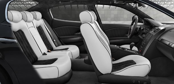 Zu den Besonderheiten des Maserati Quattroporte for Centurion zählt die sehr exklusive Lederausstattung in Bianco Polare, sie passt sehr gut zur Außenfarbe Nero Carbonio. Die Kopfstützen zeigen ein gesticktes Centurion-Logo und auf dem Armaturenträger deutet eine titanfarbene Plakette darauf hin, dass es sich hier um ein Sondermodell handelt. Auch im Maserati Quattroporte for Centurion kommt die neuste Generation des Automatik-Getriebes von ZF zum Einsatz und sorgt dafür, dass die Gänge trotz aller Sportlichkeit sanft und komfortabel gewechselt werden.