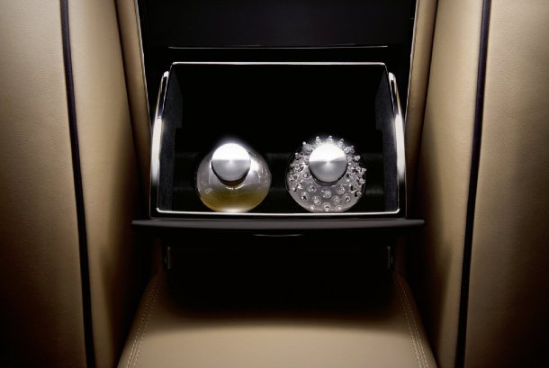 Für einen kleinen Aufpreis, der eigentlich nicht der Rede wert ist, bekommt der zahlungskräftige Kunde ein Extra, über dessen Sinn oder Daseinsberichtigung man diskutieren könnte, auf das Maybach aber besonders stolz ist. Es handelt sich dabei um einen besonderen Parfüm-Zerstäuber. Nein nein, es ist kein Duftbaum, wie man ihn in jeder Tankstelle kaufen kann. Es ist eine Anlage, die den Innenraum auf Knopfdruck mit wohlriechendem, speziell kreiertem Parfüm beduftet. Wo dieser besondere Duft aufbewahrt wird? Selbstverständlich in einem mundgeblasenen, speziell entworfenen Flakon – ach ja, der kleine Aufpreis… er beläuft sich auf 4.700,– Euro für dieses besondere Extra.