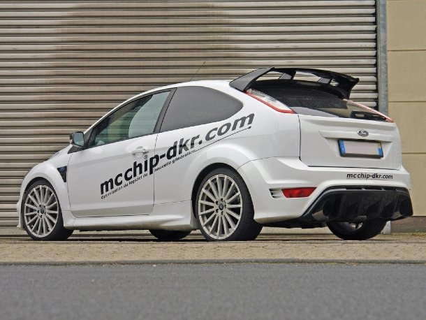 Beim Focus RS greift mcchip-dkr jedoch nicht nur zum Lötkolben, sondern tauscht zusätzlich den Ladeluftkühler gegen ein wirksameres Teil aus, erneuert die Abgasanlage und den Luftfilter und schraubt andere Zündkerzen ein. In Verbindung mit der Optimierung des Steuergerätes stehen am Ende 401 Pferdchen bereit. Das maximale Drehmoment steigt gegenüber der Serie um 172 auf 612 Newtonmeter an. Damit ist eine Endgeschwindigkeit von 278 km/h machbar. Die Kosten für diese Umrüstung belaufen sich auf 4.499,- Euro.