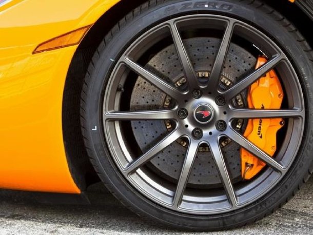 Durch die serienmäßige Airbrake und große Bremsscheiben rundum ist ein Bremsmanöver im McLaren MP4-12C eher mit einem gezielten Ankerwurf zu vergleichen. Nach nur 30,5 Metern steht der Sportler aus 100 km/h wieder still. Aus der doppelten Geschwindigkeit sind es ebenso hervorragende 123 Meter. Bei solchen Werten sollte man sich sehr sicher sein, dass bei der Vollbremsung niemand direkt hinterm Fahrzeug fährt: Dessen Bremsen dürften zu 99,9 % nicht mit diesen Ergebnissen mithalten können. Für viele Experten erstaunlich ist dabei, dass McLaren diese Werte mit herkömmlichen Stahlbremsscheiben erreicht und nicht mit den aus anderen Sportwagen bekannten Carbon-Ceramic-Scheiben.