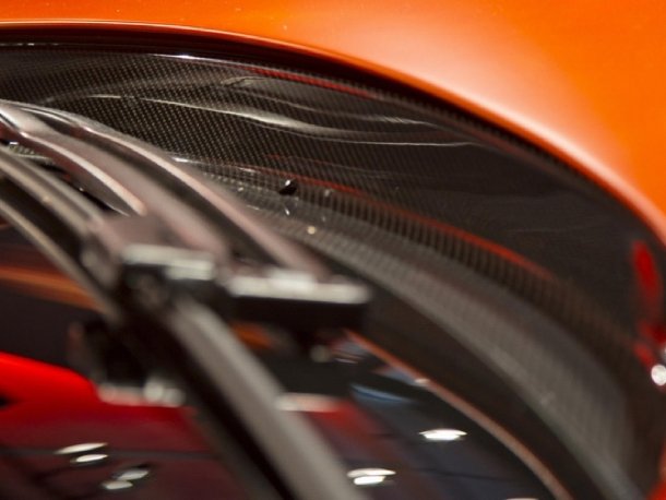 Rund um das Fahrzeug finden sich Sichtcarbon-Anbauteile. Einige, wie der Frontsplitter, sind aus dem normalen Ausstattungsprogramm bereits bekannt, andere, wie die untere Einfassung der Windschutzscheibe, die seitlichen Entlüftungen neben der Heckscheibe und die Entlüftung in der Motorhaube gab es vorher noch nicht. Sie sind auf Wunsch über die McLaren Special Operations zu ordern. Auch der Einstiegsbereich mit exklusiver Carboneinfassung, in die der „MP4-12C“-Schriftzug eingefräst ist, gehört zu den neuen Optionen. Die Carbon-Rundumkur machte am Showcar selbst vor dem Sportlenkrad nicht halt.