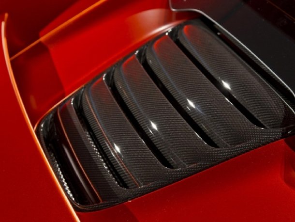Rund um das Fahrzeug finden sich Sichtcarbon-Anbauteile. Einige, wie der Frontsplitter, sind aus dem normalen Ausstattungsprogramm bereits bekannt, andere, wie die untere Einfassung der Windschutzscheibe, die seitlichen Entlüftungen neben der Heckscheibe und die Entlüftung in der Motorhaube gab es vorher noch nicht. Sie sind auf Wunsch über die McLaren Special Operations zu ordern. Auch der Einstiegsbereich mit exklusiver Carboneinfassung, in die der „MP4-12C“-Schriftzug eingefräst ist, gehört zu den neuen Optionen. Die Carbon-Rundumkur machte am Showcar selbst vor dem Sportlenkrad nicht halt.