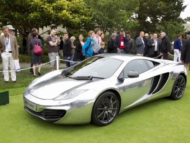 Zusätzlich zum Bespoke-Programm der Special Operations brachte McLaren ein zweites Showfahrzeug mit nach Pebble Beach. Im Feld der Conceptcars stand ein auffällig spiegelnder MP4-12C. Dieser trägt den selben Chromlack, den Rennsportfans von den Formel 1-Rennfahrzeugen des Vodafone McLaren-Teams kennen. Dank einer sehr leichten Mixtur trocknet dieser speziell von AkzoNobel Sikkens hergestellte Lack besonders schnell und kann so auch an der Rennstrecke auf reparierte Teile aufgebracht werden, wenn diese innerhalb des Rennwochenendes noch benötigt werden. Ins Farbprogramm des McLaren MP4-12C wird der Chromlack indes nicht kommen. Zum einen aus Kostengründen, vor allem jedoch, weil in den meisten Ländern ein derartig spiegelndes Fahrzeug binnen kürzester Zeit aus dem Verkehr gezogen würde.