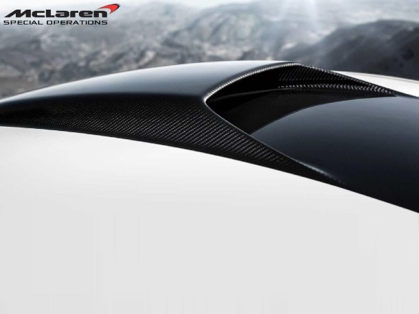 Das Exterieur wurde jedoch umfangreich bearbeitet. Eine neue Frontschürze mit umlaufender Spoilerlippe und größeren Lufteinlässen macht den Anfang und wird von Luftauslässen über den Vorderrädern ergänzt, die den Radhäusern Luft entziehen und damit den Abtrieb erhöhen. Auf dem Dach sorgt eine Carbon-Lufthutze für mehr Frischluft im Motorraum, der sich hinter den Passagieren anschließt. Die Klappe über dem Triebwerk besteht ebenso wie die dazugehörige Einfassung aus sichtbarem Carbon und mündet am Heck in den Aufnahmen des Flügels, der auch als Luftbremse bei starken Bremsmanövern dient. Dieser ist auf der Oberseite ebenfalls in Sichtcarbon ausgeführt worden und zeigt neben dem McLaren-Logo auch den Schriftzug der Special Operations Abteilung. Dieser findet sich auch nach dem Öffnen der Türen im Bereich der Schweller. Ein größerer Diffusor in der Heckschürze und neu gestaltete Leichtmetallräder mit Titanradschrauben runden den äußeren Auftritt gekonnt ab.