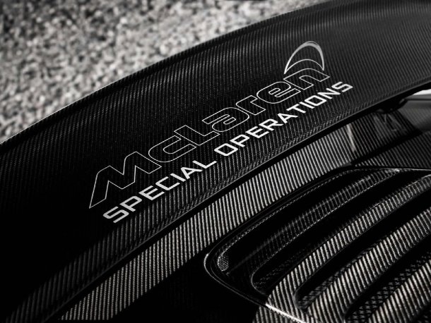 Das Exterieur wurde jedoch umfangreich bearbeitet. Eine neue Frontschürze mit umlaufender Spoilerlippe und größeren Lufteinlässen macht den Anfang und wird von Luftauslässen über den Vorderrädern ergänzt, die den Radhäusern Luft entziehen und damit den Abtrieb erhöhen. Auf dem Dach sorgt eine Carbon-Lufthutze für mehr Frischluft im Motorraum, der sich hinter den Passagieren anschließt. Die Klappe über dem Triebwerk besteht ebenso wie die dazugehörige Einfassung aus sichtbarem Carbon und mündet am Heck in den Aufnahmen des Flügels, der auch als Luftbremse bei starken Bremsmanövern dient. Dieser ist auf der Oberseite ebenfalls in Sichtcarbon ausgeführt worden und zeigt neben dem McLaren-Logo auch den Schriftzug der Special Operations Abteilung. Dieser findet sich auch nach dem Öffnen der Türen im Bereich der Schweller. Ein größerer Diffusor in der Heckschürze und neu gestaltete Leichtmetallräder mit Titanradschrauben runden den äußeren Auftritt gekonnt ab.