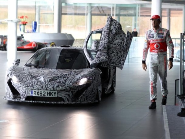 Zur Premiere des neuen MP4-28 für die Formel 1 Saison 2013 rollte Werksfahrer Jenson Button mit dem nagelneuen McLaren P1 im Tarnkleid herein. Der Supersportwagen befindet sich aktuell auf letzten Erprobungsfahrten und zeigte sich in der Tarnlackierung erstmals offiziell im Rampenlicht. Noch immer gibt es keine technischen Daten, aber aufgrund der Bilder ist immerhin klar, dass der Wagen ein Zweisitzer mit Flügeltüren wird.