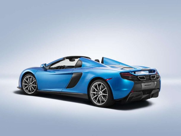 Auf Basis des auf 50 Exemplare weltweit limitierten 650S Spider MSO ließ McLaren Newport Beach dieses Fahrzeug in Cerulean Blue metallic entstehen. Der blaue Lack mit seinen großen Metallic-Flakes passt hervorragend zu den matten Sichtcarbon-Applikationen und wird durch die verchromten Auspuffendrohre und die Zehnspeichen-Super-Lightweight-Räder mit glanzgedrehter Oberfläche gut kontrastiert. Im Interieur findet sich carbonschwarzes Leder mit blauen Ziernähten und Sichtcarbonelemente, wohin das Auge blickt. Auf den Schwellern zeigt sich bei geöffneten Türen der „McLaren Special Operations“-Schriftzug.