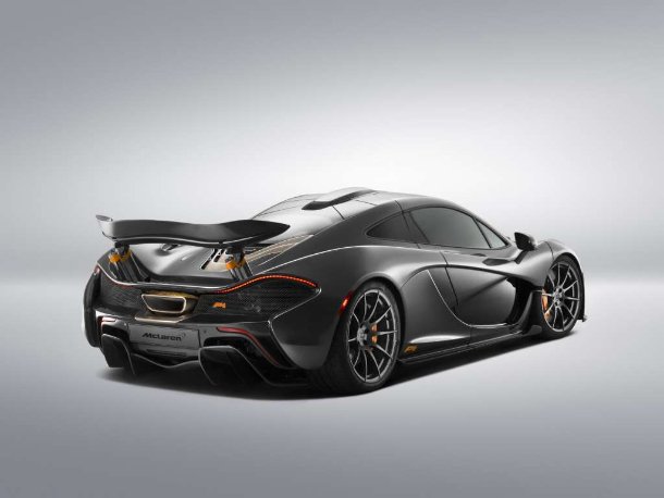 Der ebenfalls ausgestellte McLaren P1 zeigt sich im Farbton Stirling Grey metallic und erhielt einige Akzente im historischen McLaren Orange. Sowohl das Logo auf der Front, als auch die Bremssättel, die oberen Halterungen des Heckflügels und die P1-Logos an Seite und Heckpartie zeigen sich orange abgesetzt. Hinten fällt die Verwendung von Echtgold als Hitzeschild rund um das zentrale Auspuffendrohr auf – damit wird an den legendären Vorgänger F1 erinnert, bei dem ebenfalls Gold als Hitzeschutz zum Einsatz kam. Alle Gitter an Luftein- und -auslässen sind an diesem Fahrzeug silber lackiert worden, während das Interieur in schwarzem Leder und Alcantara ausgekleidet und mit Vierpunktgurten an beiden Sitzen ausgestattet wurde. Die Stellknöpfe an der Mittelkonsole greifen die Kontrastfarbe McLaren Orange auf.