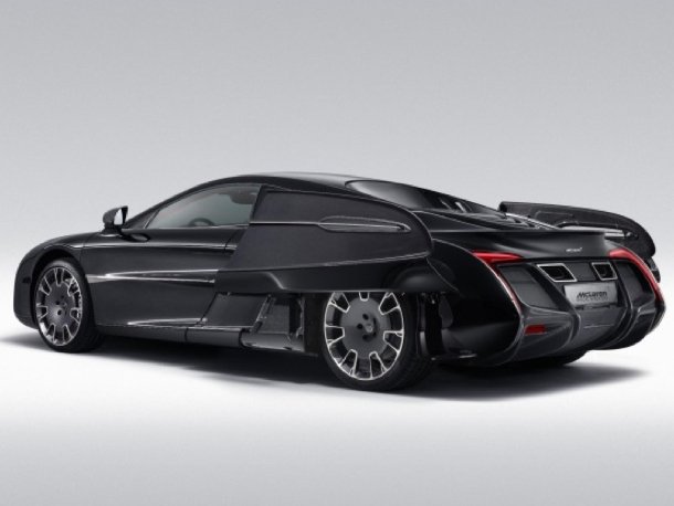 Ein wahrlich ungewöhnliches Detail für heutige Automobile sind die abgedeckten hinteren Räder. Um diese wechseln zu können fahren die Carbonabdeckungen an speziell angefertigten Scharnieren nach oben. Die Türen des McLaren X-1 öffnen wie beim MP4-12C schräg nach oben und vorne und geben damit den Zutritt für bis zu zwei Personen frei. Hier wünschte der Kunde keine optischen Änderungen gegenüber dem MP4-12C-Interieur. Einzig Nappaleder in Harissa Rot, vernickelte Aluminium-Bedienteile und Sichtcarbon-Designblenden unterscheiden den X-1 innen vom Basisfahrzeug. Auch unter der Motorhaube blieb alles beim Alten. Im X-1 arbeitet also ebenfalls der 3,8 Liter große Biturbo-V8 mit 460 kW/625 PS.