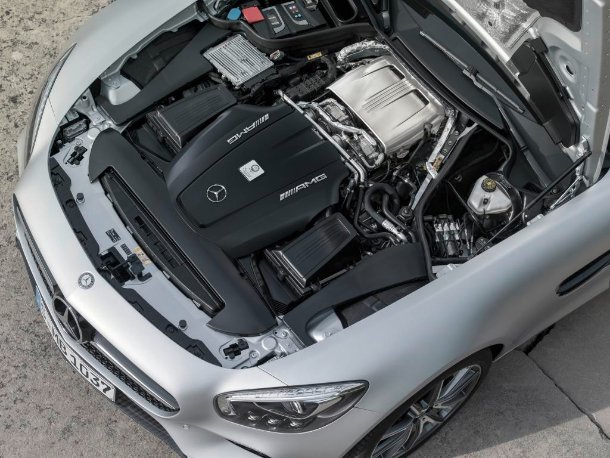 Beim Triebwerk handelt es sich erstmals im Sportwagensegment um einen V8 mit im V verbauten Turboladern, wodurch sich ein sogenanntes „heißes Innen-V“ ergibt. Diese Bauweise bietet diverse Vorteile wie eine besonders kompakte Bauform oder das sehr direkte Ansprechen der Lader sowie eine bestmögliche Anströmung der Katalysatoren, wodurch die Abgas-Emissionen sehr gering ausfallen. Dank Benzindirekteinspritzung und Trockensumpfschmierung ist sowohl in Sachen Verbrauch als auch in Sachen Sportlichkeit gut vorgesorgt.