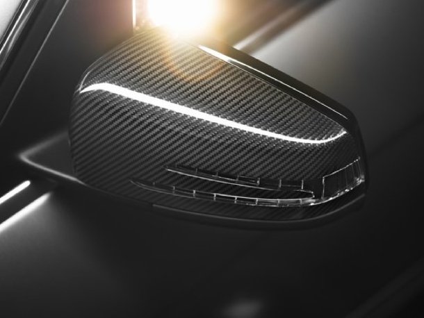 Sichtcarbon hüllt die Außenspiegel ein. Der teure Werkstoff findet sich auch an weiteren Stellen des Fahrzeugs, so zum Beispiel...