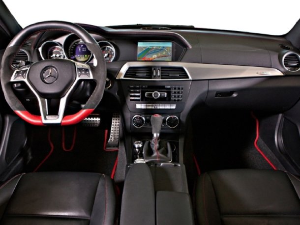 Die Austria Edition ist wahlweise in den Lackierungen „Feueropal“, „Diamantweiß“ oder „Nachtschwarz magno“ erhältlich und wird dabei stets mit schwarz lackierten Leichtmetallfelgen kombiniert. Die Besonderheit des Mercedes-Benz C 63 AMG Coupé Austria Edition liegt indes im Innenraum, der sich durch schwarzes Leder mit roten Ziernähten hervortut. Bereits beim öffnen der Türen fallen die rot beleuchteten Einstiegsleisten ins Auge. Das schwarze Alcantara-Lenkrad ist mit rotem Leder rund um die untere Metallspange akzentuiert. In die Kopfstützen der Vordersitze ist das AMG-Logo eingeprägt, über dem Handschuhfach findet sich eine „Austria Edition“-Plakette und auf dem Schalthebel der Siebengang-Speedshift-Automatik findet sich eine rot-weiße Plakette mit den Umrissen von Österreich und der individuellen Nummerierung des limitierten Sondermodells.