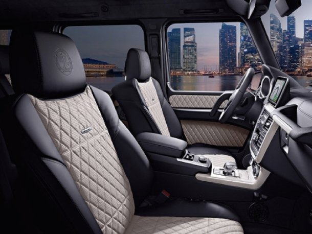 Die Rautensteppung auf den Sitzen und das in die Kopfstützen eingeprägte AMG-Logo sind serienmäßig dem Mercedes-Benz G 65 AMG vorbehalten.