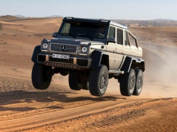 Wer nun gerne durch die Lande pflügen möchte, muss bei der kommenden Zahl tapfer sein: Mindestens 350.000,- € müssen nach Stuttgart überwiesen werden, um den lediglich 160 km/h schnellen G 63 AMG 6×6 ab Oktober in Empfang nehmen zu dürfen. Dafür gibt es aber 37 Zoll große Räder und die Garantie, dass kein anderes straßenzugelassenes Serienauto bessere Offroadfähigkeiten mitbringt.