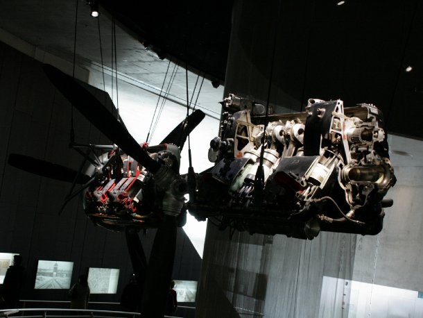 Der Rundgang durch die Ausstellung beginnt mit einer Fahrstuhlfahrt in rund 50 Meter Höhe. Man durchschreitet das Museum von oben nach unten auf einer so genannten „Doppel-Helix“, die an den Aufbau unserer DNA erinnern soll. Für Medizin-Laien: es gibt zwei ineinander verschlungene Wege nach unten, zum Einen den durch die zeitlich geordnete Ausstellung und zum Anderen den durch die Themenschwerpunkt-Räume. Beide beginnen nach der Aufzugsfahrt vor einem ausgestopften Pferd. Was macht ein solches Tier in einem Automuseum, noch dazu untermalt durch Pferdegetrappel über Deckenlautsprecher? Die heutige Marke Mercedes-Benz beinhaltet den Nachnamen des Erfinders des Automobils, Carl Benz. Heute gehört die Marke zum Daimler-Konzern, der ebenfalls einen wichtigen Nachnamen beinhaltet. Gottlieb Daimler forschte unabhängig von Carl Benz am selben Thema, war jedoch den entscheidenden Hauch zu langsam bei der Patenteinreichung. In der Zeit, als die beiden an Motoren und deren Einsatzzwecken forschten und experimentierten, gab es auf den Straßen in aller Welt lediglich Pferde- und Ochsengespanne. Heute schwer vorstellbar.