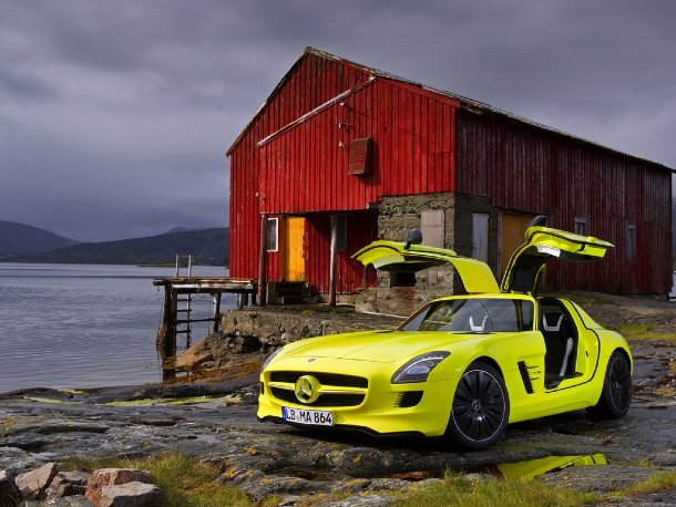 AMG stellt sein aktuellstes Entwicklungsprojekt in Norwegen vor, wo schon fleißig Ökostrom eingesammelt wird. Im Mercedes-Benz SLS AMG E-Cell, der Ende 2012 serienreif sein wird, steckt ein echter Supersportler: Mit 392 kW bei maximalen 880 Nm Drehmoment beschleunigen 4 Elektromotoren diesen geflügelten Allradler in nur 4 Sekunden von 0 auf 100 km/h – und das ohne Verzögerung! Wo ein Motor sein Drehmoment erst aufbaut, lassen seine vier Synchron-Elektromotoren ihrer Kraft sofort freien Lauf und schießen den Sportler ab, wie einen Torpedo.