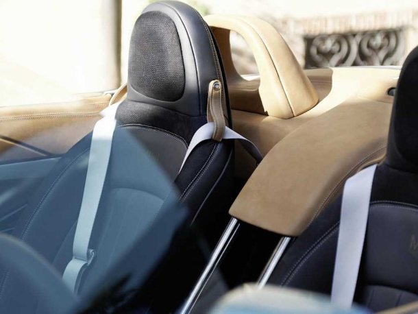 Die Italiener nahmen die Aufgabe gern an und erstellten einen puristisch-offenen Roadster mit flacher Windschutzscheibe und gänzlich ohne sonstigen Wetterschutz. Während an der Front durch die Form von runden Scheinwerfern und hexagonalem Grill noch typische Mini-Merkmale aufgegriffen wurden, zeigen sich das Profil und Heckpartie betont eigenständig. Die Formensprache ist dabei auf das Wesentliche konzentriert, ohne überflüssige Schnörkel und Sicken. Selbst auf klassische Türgriffe wurde zugunsten einer möglichst glatten Seitenfläche verzichtet. Die Pforten öffnen stattdessen über Tastflächen auf Höhe der Sitze.