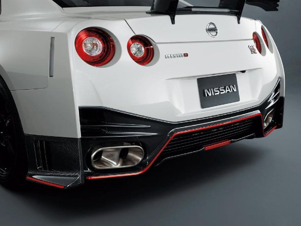 Interessenten können den Nissan GT-R Nismo wahlweise in Brilliant Weiß Perleffekt, Meteor Flake Schwarz Perleffekt, Ultimate Silber metallic oder Vibrant Rot ordern. In den Radhäusern finden sich dabei jeweils 20 Zoll große Sechs-Speichen-Felgen in Schwarz mit 255/40 ZRF 20 Dunlop-Bereifung vorn und 285/35 ZRF 20er Pneus am Heck. Gegenüber den normalen GT-R-Modellen erhält die Nismo-Variante ein umfangreiches Aerodynamik-Update mit größerem Frontspoiler und feststehendem Heckflügel. Bei 300 km/h stehen rund 100 Kilogramm zusätzlicher Abtrieb zur Verfügung.