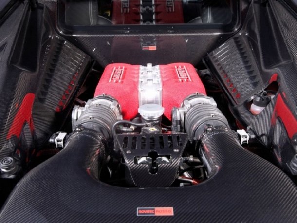 Unter der Haube legte Novitec Rosso Hand an die Luftzuführung des Triebwerks und verbaut eine neue Airbox aus Carbon. Zusätzlich gibt es einen Hochleistungsauspuff und ein darauf abgestimmtes Motormanagement, wodurch der 458 Italia 39 zusätzliche PS im Motorblock zusammentrommelt und mit nunmehr 448 kW/609 PS auf den Asphalt losgeht.