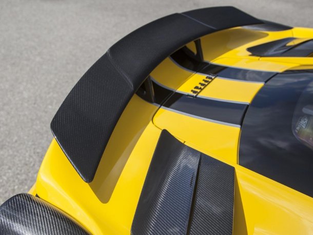 Zudem verbaut Novitec Rosso ein umfassendes Aerodynamikpaket am 458 Speciale, bei dem alle Bestandteile aus Echtcarbon bestehen und dies auf Kundenwunsch auch durch ihre Klarlackschicht hindurch zeigen. An der Frontschürze sorgen eine Spoilerlippe und eine Aeroblende im Lufteinlass für bessere Abtriebswerte. Auch die Luftauslässe in der vorderen Haube wurden genau in Augenschein genommen und aerodynamisch durch eine veränderte Luftführung verfeinert. An den Seiten wachsen zusätzlich zu den serienmäßigen Luftleitelementen an den Schwellern Erweiterungen hervor und auch die Heckpartie kam nicht ungeschoren davon. Genauer gesagt wurde hier wohl das meiste Hirnschmalz verwendet und durch Zusatzflügelchen auf den hinteren Kotflügeln, einen breiten Heckflügel sowie einen umgestalteten Diffusor in Form gebracht. Auch die Luftauslassgitter rund um die Heckscheibe und die Blenden rund um die Auspuffendrohre zeigen sich in verändertem Design. Auf Wunsch sind zudem Sichtcarbonteile für die Außenspiegelhalter, die Dreiecksabdeckung der vorderen Seitenscheiben, die hinteren Seitenscheiben und die Rückleuchteneinfassungen erhältlich. Alle Teile wurden im Windkanal entwickelt, um jeglichen Auftrieb des Serienfahrzeugs in Abtrieb zu verwandeln und damit ein stabileres Schnellfahren zu ermöglichen.