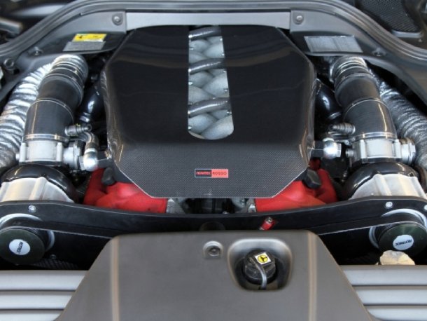 Natürlich möchte man eine derartige Leistungsausbeute langfristig erhalten. Dafür verbaut Novitec Rosso einen neuen Wasserkreislauf mit eigenem Ladeluftkühler. Auch der Ansaugtrakt mit Sportluftfilter ist neu entwickelt worden und arbeitet mit den Hochleistungseinspritzdüsen zusammen. Die Abgase werden durch eine Edelstahl-Auspuffanlage mit vier schwarz beschichteten Endrohren abgeführt und verbreiten dabei hervorragenden Sound, der sich über einen Knopf am Lenkrad mittels Klappen in den Rohren verändern lässt. Da das gesamte Fahrzeug durch einen Sportfedernsatz um 25 Millimeter tiefergelegt wurde, ist die Nose-Lift-Funktion durchaus sinnvoll, die die Front des Novitec Rosso 599 SA Aperta auf Knopfdruck um 40 Millimeter anhebt, um besser in Tiefgaragen zu kommen.