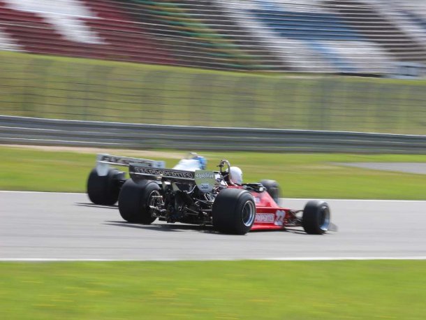 Zum Repertoire der Historischen Formel 1 Meisterschaft gehören enge Rad-an-Rad-Duelle, wie es sie auch in der modernen Fassung bis heute immer wieder gibt.