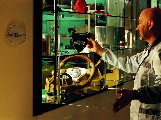Ja, richtig gelesen, ein Atelier. Horacio Pagani sieht sich selbst nicht als Hersteller sondern als Künstler. Jedes von ihm gebaute Fahrzeug ist auch wahrlich ein Kunstwerk, das genausogut in einem Museum für moderne Kunst stehen könnte, wie in einer klimatisierten Sammlergarage.