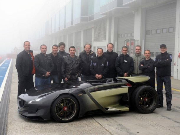 Das stolze Peugeot-Team nachdem der EX1 den Rundenrekord für Elektrofahrzeuge auf der Nordschleife errang. Mit 9:01,338 Minuten eine durchaus beachtliche Zeit.