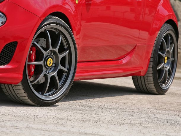 Um nun tatsächlich diese irren Werte zu erreichen, wird die vorhandene Beatmungsanlage durch einen eigens hergestellten Turbolader ergänzt, sowie das Ausatmen nun durch eine aus Edelstahl gefertigte Abgasanlage geleitet. Der Kunde kann für diese aus vielen, verschieden designten Endtöpfen auswählen. Damit die Brennkammern auch im heißen Sommer immer mit frischer Luft versorgt werden können, werden die beiden kleineren Ladeluftkühler, wie auch deren Leitungen, durch eine große Kühleranlage ersetzt. Die auf die Karosserie treffende Luft wird ausserdem von neu angeordneten Kohlefaser-Anbauteilen, die man auch an der Abarth-Rennversion Assetto Corse wiederfindet, besser in den Motorraum geleitet. Zu guter Letzt werden dem Antriebsaggregat noch neue Einspritzventile und Kraftstoffdruckregler gespendet, sodass nun ein runder Betrieb mit ordentlich Dampf vorzufinden ist.