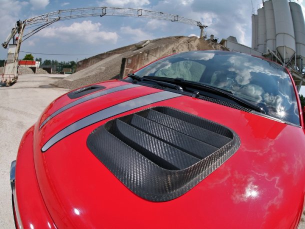 Um nun tatsächlich diese irren Werte zu erreichen, wird die vorhandene Beatmungsanlage durch einen eigens hergestellten Turbolader ergänzt, sowie das Ausatmen nun durch eine aus Edelstahl gefertigte Abgasanlage geleitet. Der Kunde kann für diese aus vielen, verschieden designten Endtöpfen auswählen. Damit die Brennkammern auch im heißen Sommer immer mit frischer Luft versorgt werden können, werden die beiden kleineren Ladeluftkühler, wie auch deren Leitungen, durch eine große Kühleranlage ersetzt. Die auf die Karosserie treffende Luft wird ausserdem von neu angeordneten Kohlefaser-Anbauteilen, die man auch an der Abarth-Rennversion Assetto Corse wiederfindet, besser in den Motorraum geleitet. Zu guter Letzt werden dem Antriebsaggregat noch neue Einspritzventile und Kraftstoffdruckregler gespendet, sodass nun ein runder Betrieb mit ordentlich Dampf vorzufinden ist.