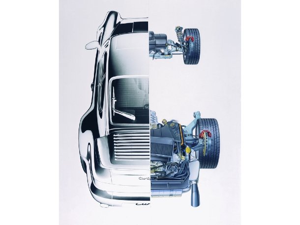 Im Sommer 1990 rollte endlich das Topmodell aus Zuffenhausen zu den Händlern. Angetrieben wurde er, wie schon sein Turbo-Vorgänger, von einem 3,3 Liter großen Sechszylinder Boxermotor. Die Leistung war allerdings auf stramme 235 kW/320 PS angewachsen. Eigentlich kein schlechter Wert, aber für viele Porsche-Fans enttäuschend, da bereits der Basis-11er mit 184 kW/250 PS im Datenblatt stand und ihnen der technische Abstand zum Topmodell einfach zu gering war, für die fälligen knapp 70.000,- DM Aufpreis (Turbo-Grundpreis: 190.000,- DM). Besonders der Unterschied von lediglich 10 km/h mehr Topspeed machte den hartgesottenen Fans Kummer.