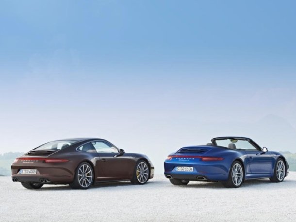 Nach den heckgetriebenen Carrera-Varianten als Coupé und Cabrio rollt der Porsche 911 (991) nun auch als Carrera 4 und Carrera 4S heran. Zu erkennen ist er am Heck durch ein Leuchband, das die Heckleuchten optisch miteinander verbindet. Gegenüber dem Vorgängermodell konnten je nach Ausstattung bis zu 65 Kilogramm Gewicht eingespart werden, was sich auch beim Verbrauch positiv bemerkbar macht.