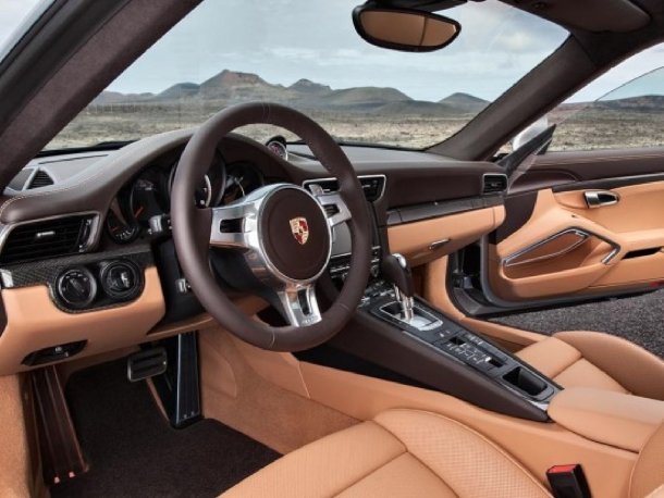 Das Interieur basiert logischerweise auf dem des normalen 991, erhält jedoch eine luxuriösere Anmutung. Speziell die Bicolor-Lederausstattung im Turbo S nebst adaptiven Sportsitzen und belederter Sitzrückseiten kann überzeugen. Die Designblenden am Armaturenbrett können in Sichtcarbon, Aluminium oder Mahagoniholz bestellt werden. Für den Turbo stehen diese Ausstattungen gegen Aufpreis zur Verfügung. Serie ist hingegen eine Bose-Soundanlage, die wahlweise durch eine Burmester-Anlage ersetzt werden kann. Ein radargesteuerter Abstandsregeltempomat und die kameragestützte Tempolimit- und Verkehrszeichenerkennung runden die Ausstattung gekonnt ab.