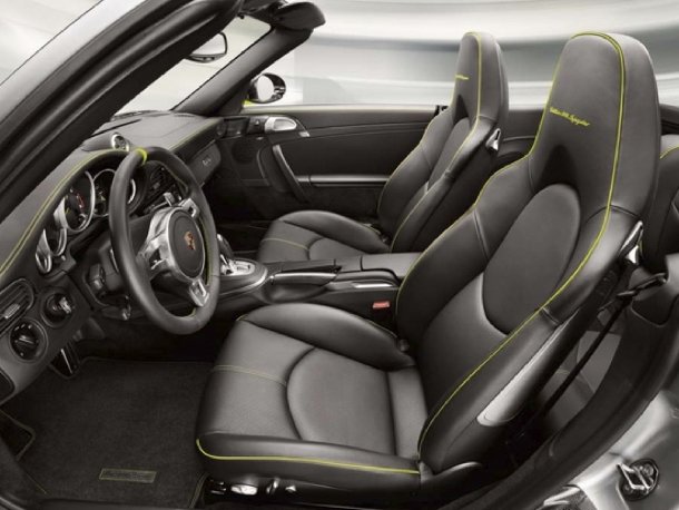 An den Sitzen finden sich grüne Kedern und der eingestickte Schriftzug "Edition 918 Spyder".