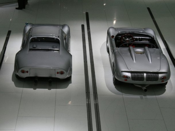 Ein weiteres Sonderthemenfeld sind Konzeptfahrzeuge. Hier zeigt Porsche verschiedene Autos die (so) nie in Serie gegangen sind. Angefangen beim Typ 754 T7, der die grobe Form des späteren 911 bereits vorweg nahm, jedoch noch als vollwertiger Viersitzer geplant war, über den 911 S Typ 915, einen um 350 Millimeter verlängerten, viersitzigen 911er bis hin zum Panamericana, den Ferry Porsche 1989 zu seinem 80sten Geburtstag geschenkt bekam und der mit einer interessanten Dachkonstruktion und Porsche-Wappen im Reifen ebenso auffällt, wie mit der giftgrünen Lackierung – sage bitte niemand, Porsche-Design seie eintönig. Auch die Studie zum mittlerweile erfolgreich laufenden Boxster ist hier zu bewundern.