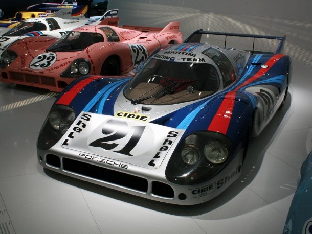 Berühmter Porsche-Rennwagen mit drei Zahlen? 917, korrekt. Anlässlich des 40sten Geburtstages richtete Porsche diesem Rennsportmonster im vergangenen Jahr einen Ehrenplatz im Museum ein, auf dem alle wichtigen Ausbaustufen des Fahrzeugs zu sehen sind. Zusätzlich wird an einem halb-auseinandergenommenen 12 Zylinder-Turbotriebwerk des 917/30 gezeigt, woher die 1.200 Pferdchen kamen, die zum Marsch bliesen.