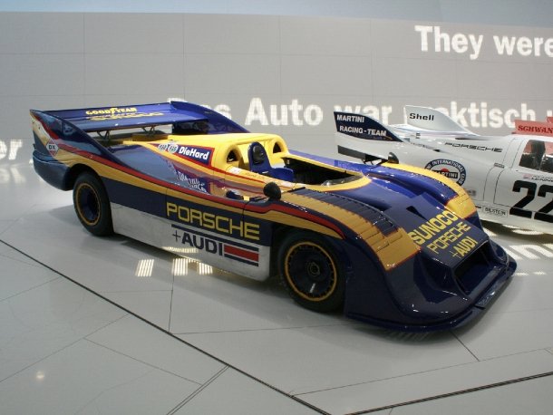 Berühmter Porsche-Rennwagen mit drei Zahlen? 917, korrekt. Anlässlich des 40sten Geburtstages richtete Porsche diesem Rennsportmonster im vergangenen Jahr einen Ehrenplatz im Museum ein, auf dem alle wichtigen Ausbaustufen des Fahrzeugs zu sehen sind. Zusätzlich wird an einem halb-auseinandergenommenen 12 Zylinder-Turbotriebwerk des 917/30 gezeigt, woher die 1.200 Pferdchen kamen, die zum Marsch bliesen.