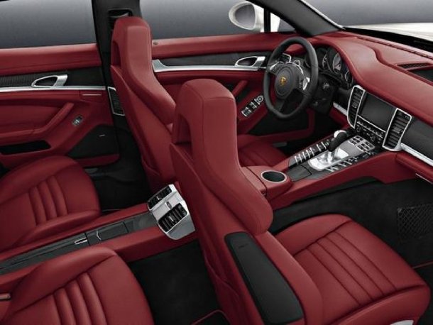 Wenn man die Türen der Middle East Edition öffnet, fühlt man sich endgültig in den Orient versetzt. Als Kontrast zur weißen Karosserie wurden fast alle sichtbaren Bereiche mit Leder in Carrerarot bezogen. Dazu gibt es einen Dachhimmel aus schwarzem Alcantara, sowie Aluminium- und Sichtcarbonelemente. Auch kleine Details wie die Lüftungsdüsen wurden bedacht und ebenfalls mit Leder bestückt. In den aus Carbon gefertigten Innenschwellerverkleidungen und auf den Fußmatten finden sich Plaketten mit der jeweiligen Fahrzeugnummer und dem Hinweis auf die Exclusive Middle East Edition. Ein weiteres Detail ist der Zündschlüssel. Wie bei allen Panamera-Modellen erinnert dessen Form an das Fahrzeug. Beim Sondermodell werden zusätzlich die seitlichen Bereiche des Schlüssels in der Karosseriefarbe Carraraweiß metallic lackiert. Dazu erhält der Kunde ein exklusives Schlüsselmäppchen in rotem Leder.